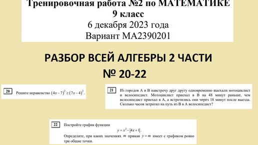 СтатГрад. Тренировочная работа № 2 по математике (ОГЭ) от 6 декабря 2023 года. МА2390201. Вся алгебра 2 части.