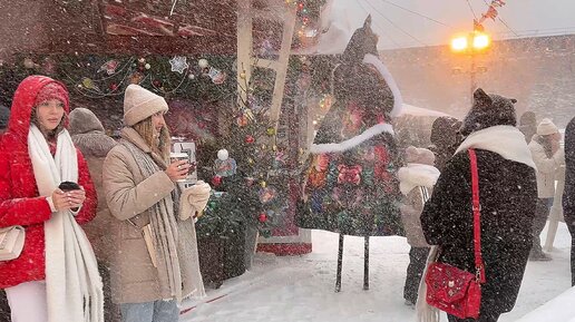 СНЕЖНАЯ БУРЯ ,СИЛЬНЕЙШИЙ СНЕГОПАД В МОСКВЕ. ЗИМНЯЯ СКАЗКА И ЯРМАРКА НА КРАСНОЙ ПЛОЩАДИ. Красивые девушки в шубках