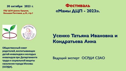 Мамы ДЦП 2023. Видео выступления ведущего эксперта ОСРДИ г. Москвы Усенко Татьяны Ивановны