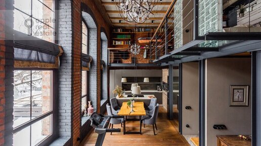 Лофт в двух уровнях с потолками высотой 8 метров и огромными окнами