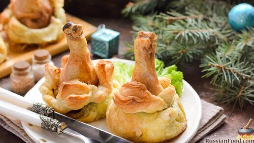 Сочные, сытные, аппетитные, прячутся в мешочках. Что это? Куриные ножки в слоёном тесте