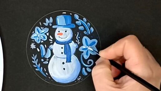 Как сделать новогоднюю открытку со снеговиком.
