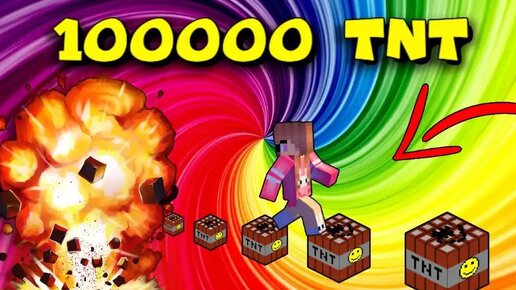 💥Радужный Бум 100000 ТНТ в Майнкрафт! Minecraft Юля Май