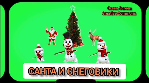 Санта и снеговики Green Screen футаж. Хромакей анимация на зелёном фоне.