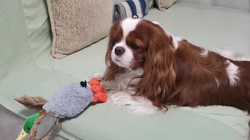 Далее: Сэму очень понравилась дичь - даже ночью он проверял, всё ли с ней в порядке, взял спать к себе)) И вот утром продолжились игры #20231212