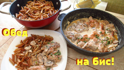 На обед. Божественная куриная грудка и жареные макароны.