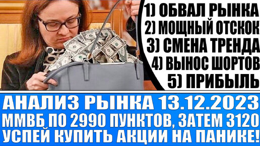 Анализ 13.12.2023 / Сегодня будет хаос на рынке! / Ммвб по 2990 пунктов / Время покупать акции!