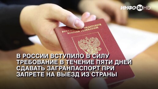 В России вступило в силу требование в течение пяти дней сдавать загранпаспорт при запрете на выезд из страны.