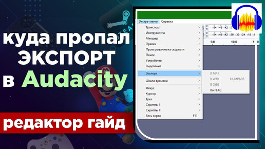 Где находится меню ЭКСПОРТ в Audacity v3.4.2