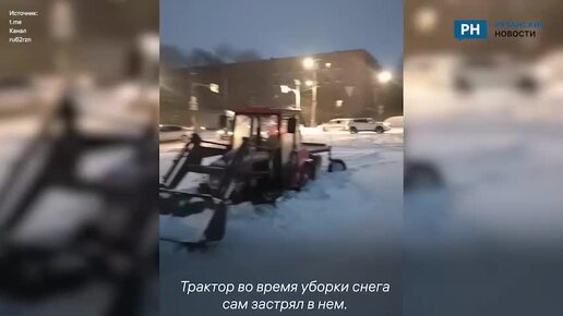 В Рязани застрял трактор во время уборки снега