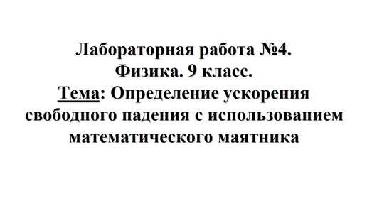 Лабораторная работа № 4. Физика 9 класс. Тема: Определение ускорения свободного падения