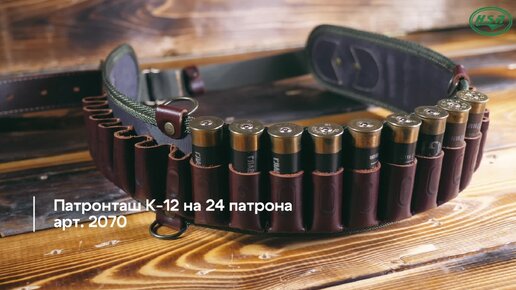 Арт 2070_Патронташ К-12 на 24 патрона открытый с подвесной системой, коричневый