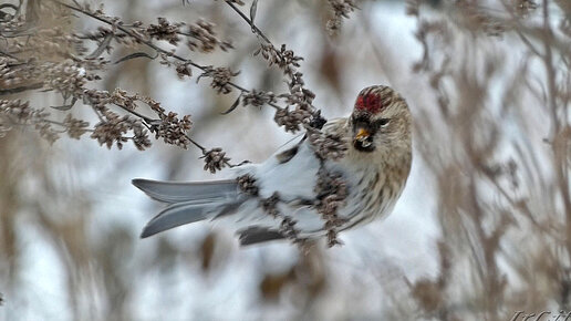 Чечетка - красивая птичка! Завтрак на морозе! Уткина Заводь. Санкт-Петербург.
