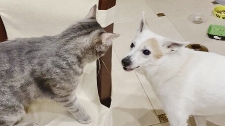 Фрейка значит по ушам Шарику лупит, а я значит бубликами расплачивайся 🤨😸Что с этой хулиганкой делать 🙄