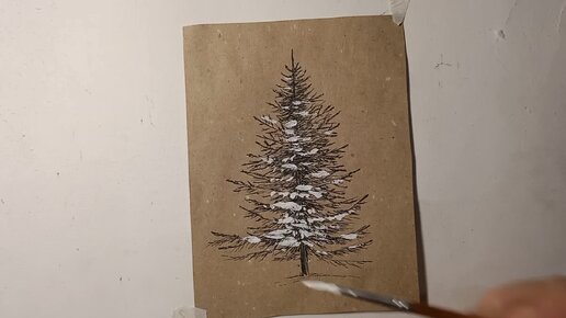 Рисунок елки гелевой ручкой на крафтовой бумаге. Идея для новогодней открытки
