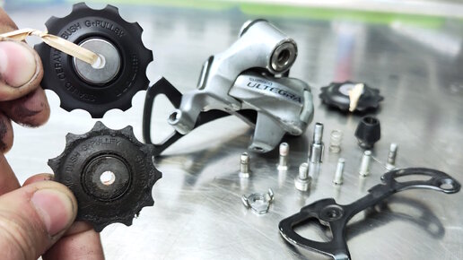 Чистка заднего переключателя шоссейного велосипеда. Замена роликов переключателя