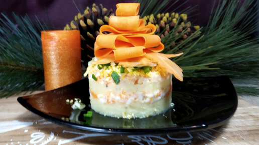 ВКУСНЫЙ САЛАТ НА НОВЫЙ ГОД ИЗ СЕЛЬДИ- НЕЖНЫЙ!!! ДЕЛАЕМ УКРАШЕНИЕ ДЛЯ САЛАТА ИЗ ОБЫЧНОЙ МОРКОВИ!!!