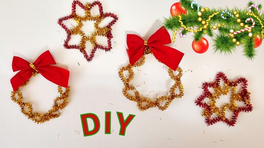 Супер просто и быстро. Веночек и звезда, игрушки на елку за 5 минут из синельной проволоки.