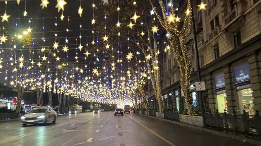 Тбилиси. Сказка на проспекте Руставели. 15 декабря в 20 часов зажгут елку и иллюминацию. Ну а пока идет тестирование.