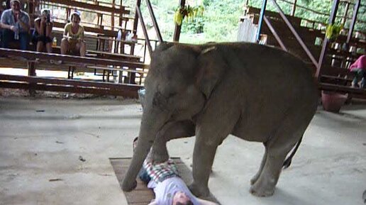 Интим не предлагать! На потеху публике получил массаж в исполнении слона