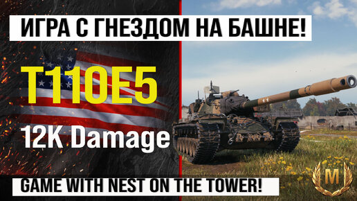 T110E5 лучший реплей недели, бой на 12k Damage | Обзор Т110Е5 гайд по танку США в Мире танков