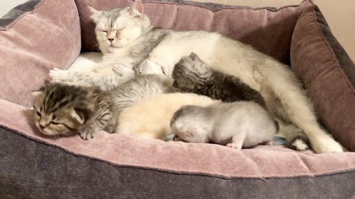 Котята кошки Кайли хотят выбраться из лежанки. Котятам 16 дней.