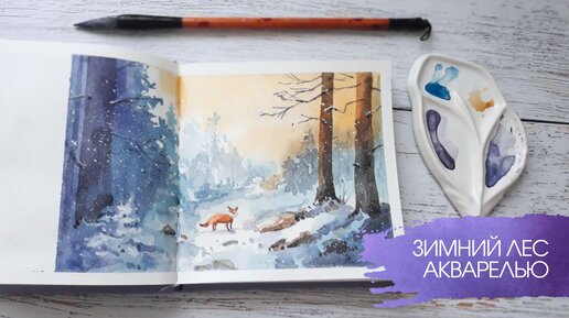 Рисую снежный зимний лес с лисичкой 🦊 Новогодний рисунок акварелью