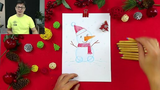 Как нарисовать Снеговика цветными карандашами