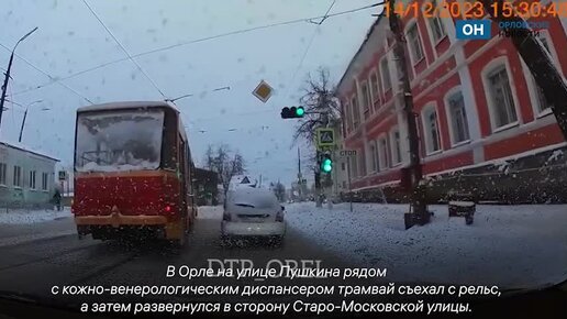 В Орле трамвай съехал с рельс и продолжил движение боком