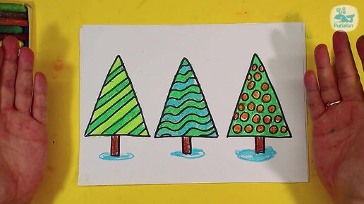 Новый год не загорами - рисуем три елочки и раскрашиваем