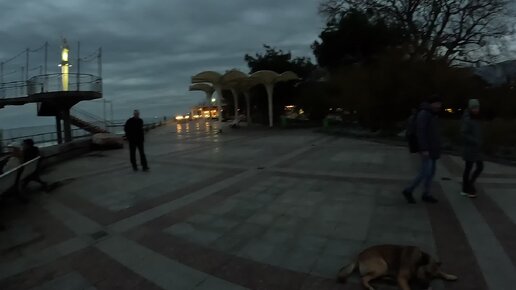 Набережная Ялты 14.12.2023 Массандровский пляж.Елку ставят на площади Крым погода +11 вечером