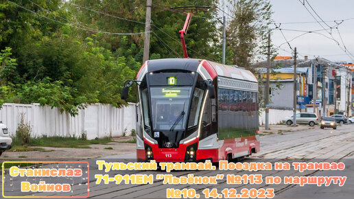 Тульский трамвай. Поездка на трамвае 71-911ЕМ "Львёнок" №113 по маршруту №10. 14.12.2023