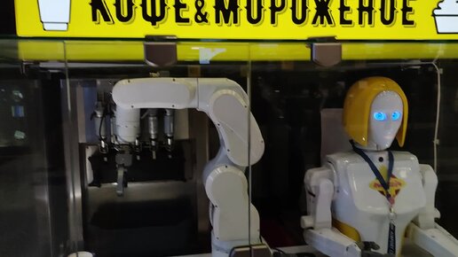 Испытал робота, который продает мороженое в казанском аэропорту