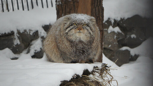 Наши манулы Зеленогорск, Караганда и котята вышли из своих домиков несмотря на мороз.