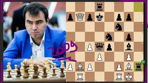 Этьен Бакро (белые) убедительно жертвует качество Шахрияру Мамедьярову и через 2 хода убеждает соперника сдаться (Нальчик, 2009, 1-0)