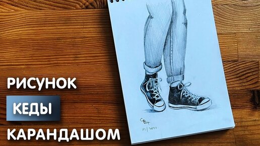 Как нарисовать кеды на ногах карандашом | Рисунок для начинающих поэтапно