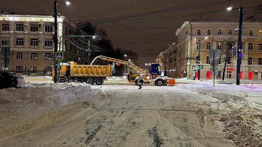 Как убирали улицы Воронежа во время сильнейшего снегопада ночью 15 декабря 2023 года