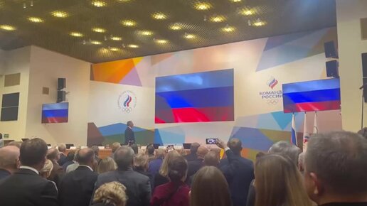 Олимпийское собрание стартовало в Москве с гимна России и поднятия российского триколора