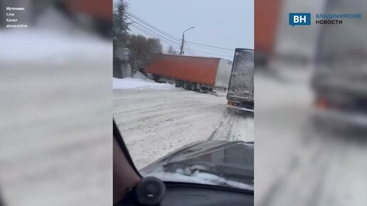 Фура спровоцировала пробку во Владимирской области из-за заноса на дороге
