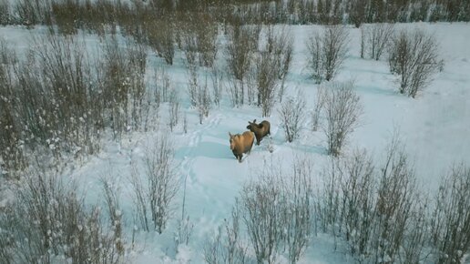 Лоси случайно снятые на коптер у заброшенного села Адыгалах Магаданской области