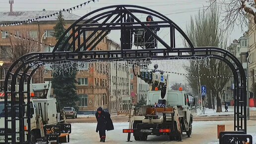 Луганск сегодня 🧊🌧️ Сквер ВЛКСМ после ремонта Россией наряжают гирляндами 💡🎅🎄 #москвалуганск #луганск #лугансконлайн #луганскновости #л