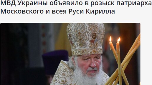 МВД Украины объявило в розыск патриарха Московского и всея Руси Кирилла.