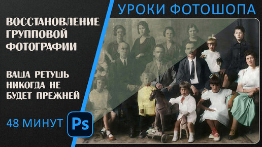 Как отремонтировать старую групповую фотографию в Фотошопе | Полный гайд.