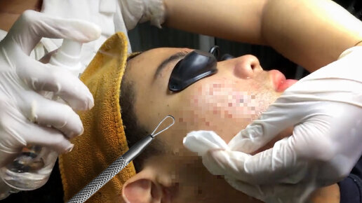 "Прыщи достали" - спасаем парня с воспалениями на щеке (косметолог делает чистку)