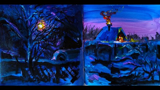 Деревенский вечер - создание рисунка акрилом