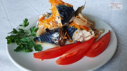 Скумбрия с овощами в банке в духовке, минимальная трата времени. Вкусно и просто