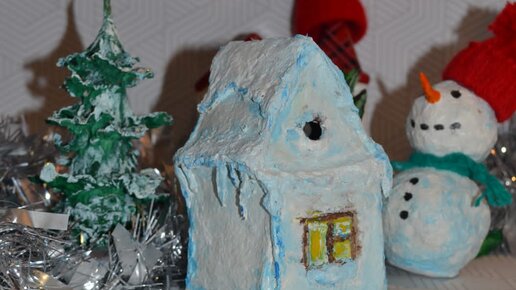 Сказочный ледяной домик из папье маше/домик своими руками.
