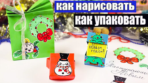Новогодние РИСУНКИ для детей! Примеры УПАКОВКИ подарков своими руками