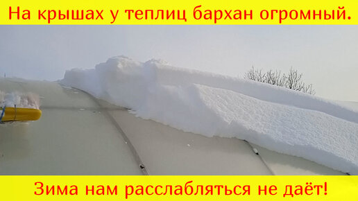 Счищаем снег с теплиц, накидываем снег в теплицы.