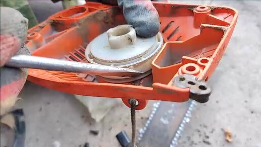 Бензопила-зацепилась заводная ручка